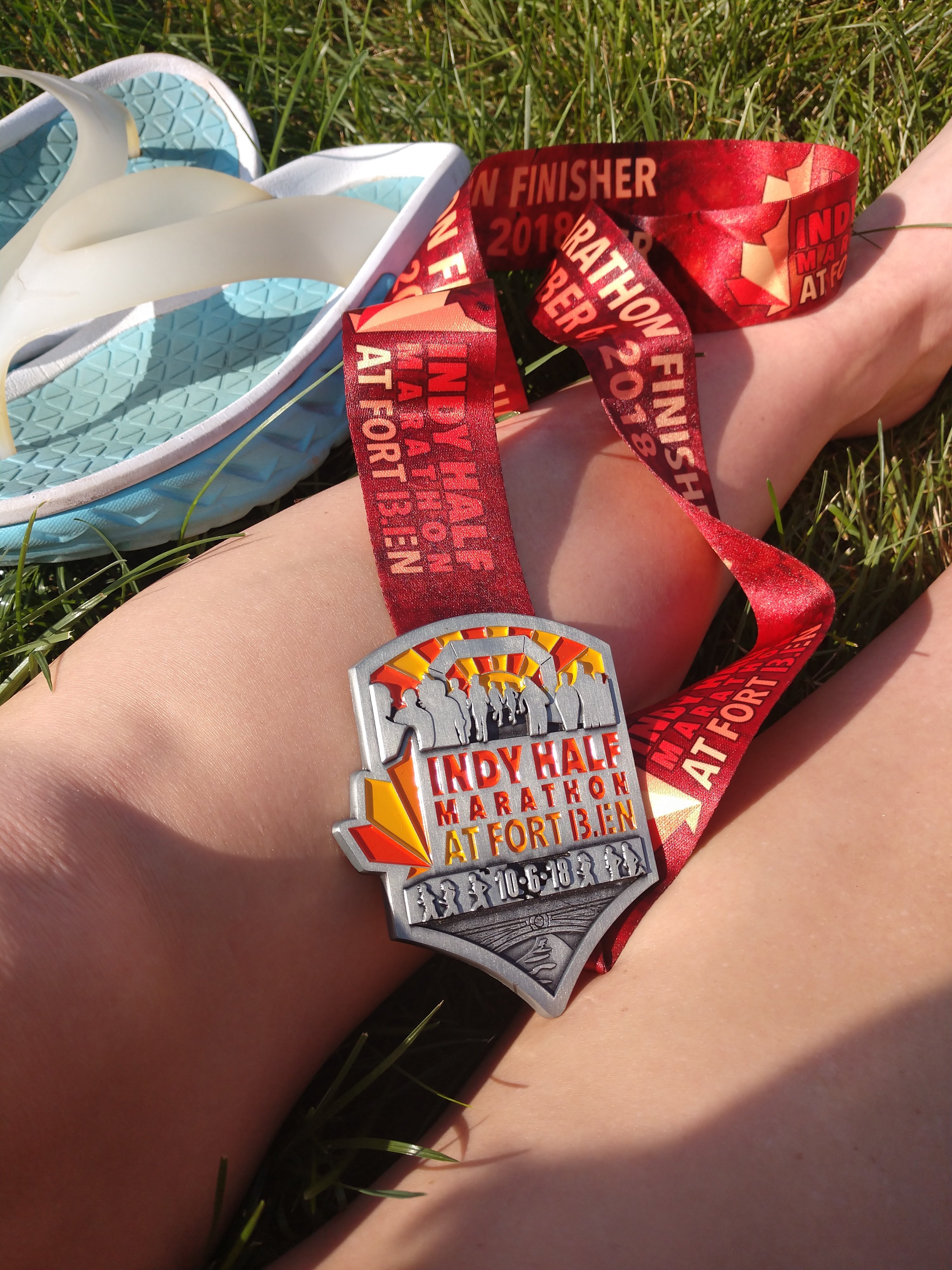 The Indy Half at Fort Ben was my second-slowest half yet at 2:35. “Runner’s World” said the Indy Half Marathon at Fort Ben is one of the most scenic races in the country, and they weren’t wrong. Running through the woods around Fort Harrison State Park was beautiful. However, I didn’t anticipate the hills, especially at Miles 3 and 10; humidity on an unseasonably warm day; getting nauseous during the home stretch; or my Vaseline failing and fresh blisters popping up on my feet (ouch!) I felt terrible after finishing and thought I was going to throw up on the way back to my car. I told Mom on the way home this was the first half where I felt like I had to physically earn the medal. But nonetheless I’m still glad I did it.
