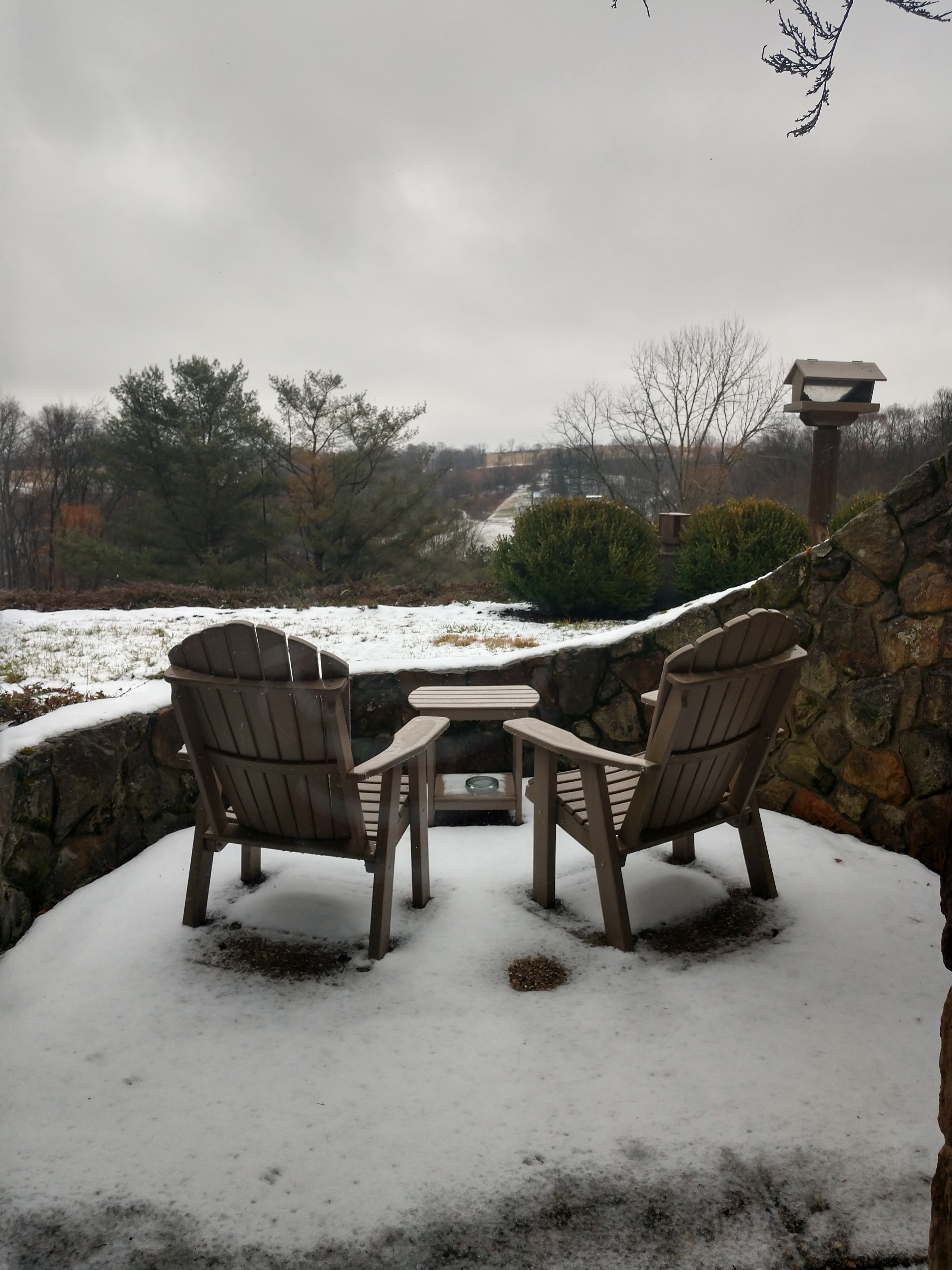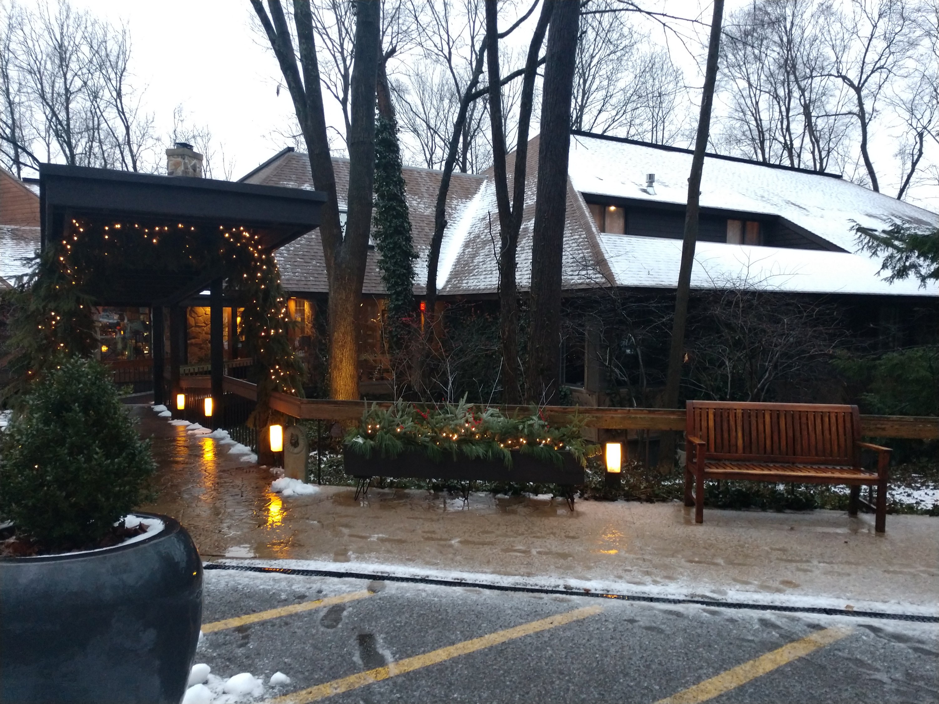 Fast forward to the 18th this past Saturday. The Inn is located in Millersburg, about two hours northeast of Columbus in Holmes County, the heart of Ohio’s Amish Country. We went east via Ohio 16, which was an easy drive in spite of the wind and freezing rain. Coshocton and Holmes counties are hilly and had gotten some snow we hadn’t gotten yet in Columbus, so the light dusting over the fields and front yards added to the beauty of the area.