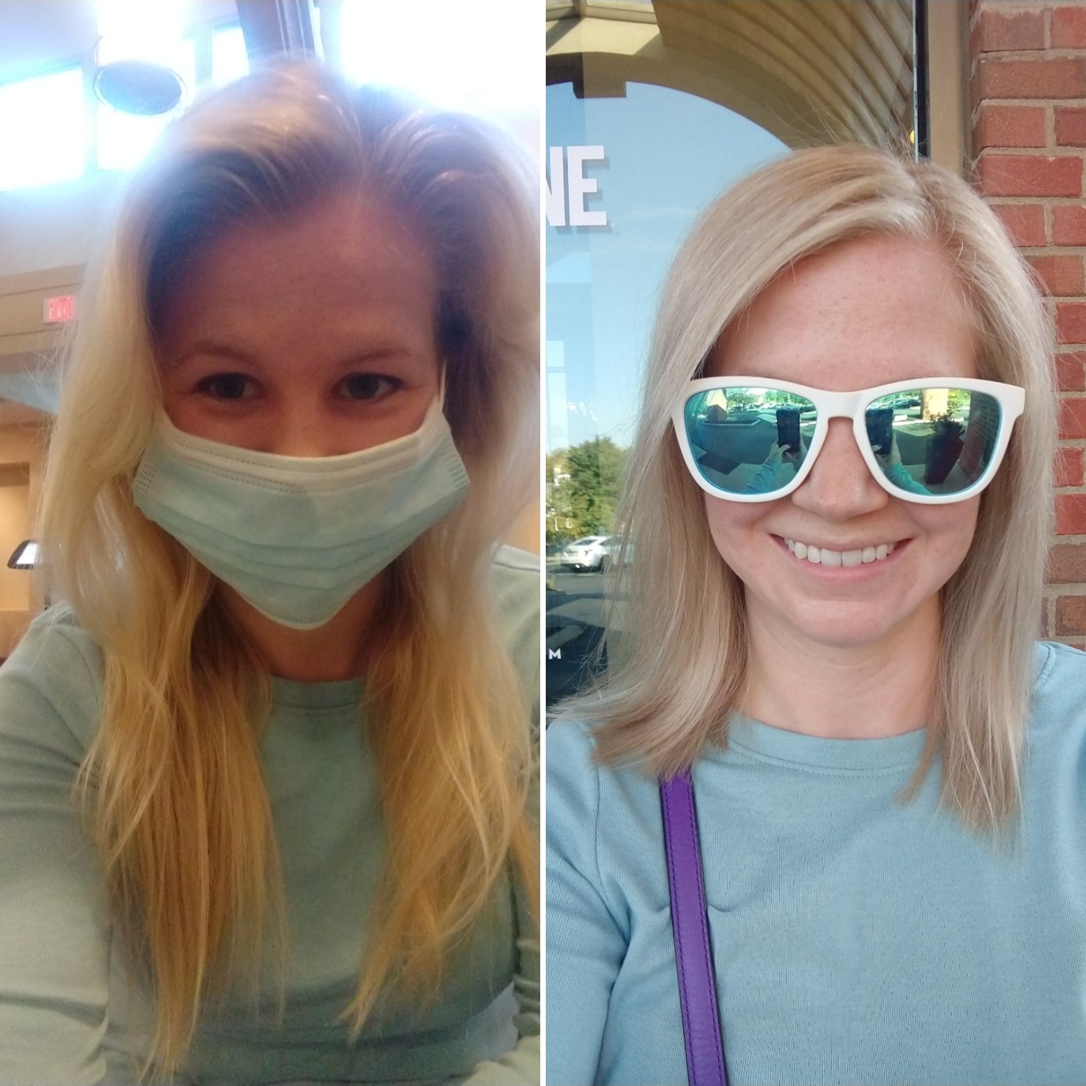 As soon as I felt those first sections of hair in the back falling, there was an immediate emotional lift. I looked up for Adrienne (my stylist) to cut the sides and front. Watching the five or six inches come off each side gave me confirmation I made the right call with getting back to my long bob.