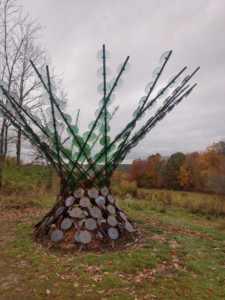 Saturday morning was a great time to explore the trails around Honey Run. There’s six trails and we hiked five of them. The Holmes County Open Air Art Museum is located on the grounds, and we enjoyed ourselves climbing up and down the hills to read the haikus, see Around the Bend, and really take in the fall colors in the hills.