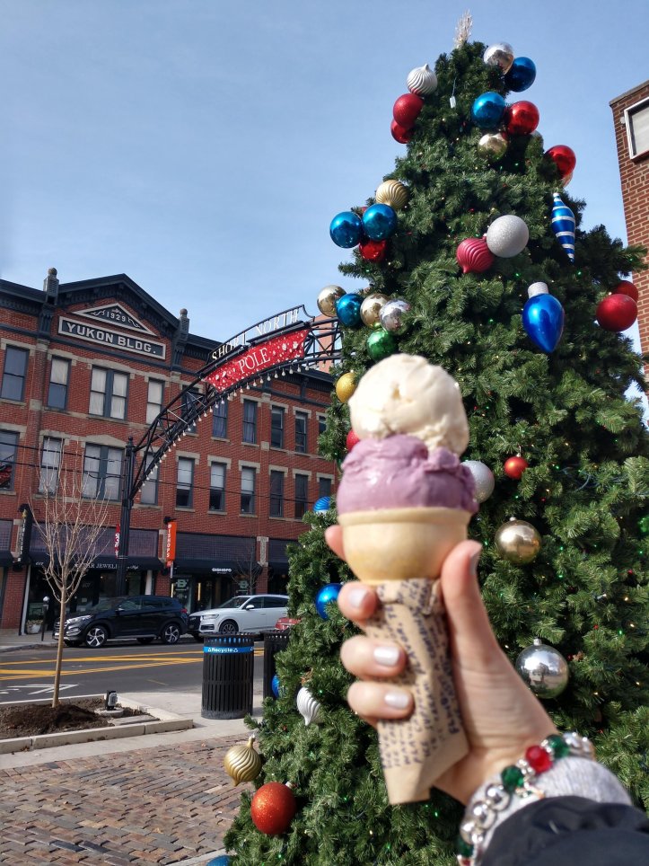 In 2018 I stopped by Jeni’s Ice Cream for a vanilla and wildberry lavender cone. It was pretty frigid, but I wanted to do something fun and wildberry lavender tastes just like Trix cereal. While I was heading down High Street I passed the Short North tree and took this picture. I miss those walks, but I know a year from now they’ll be back. All we have to do is hold on, and then it’s ice cream in the tundra with a Christmas tree again.