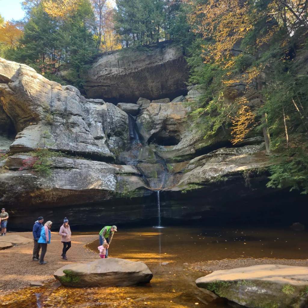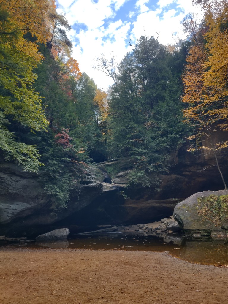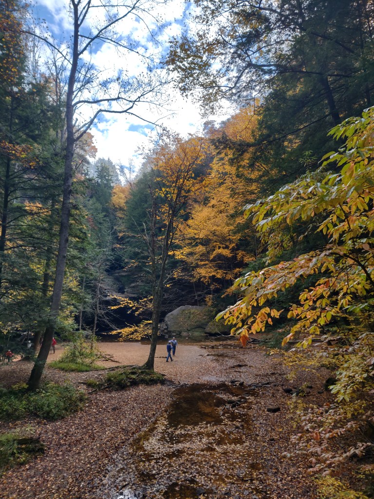 So yesterday morning I got up bright and early, leaving my place a little after 8 a.m. with a pit stop to get some gas. Then I headed southeast to Hocking County. The drive out of Columbus was beautiful. The trees were turning gold, bright orange and ruby red all along Route 33, and those colors continued onto Route 664 south, heading to Old Man’s Cave/Hocking Hills State Park. It turns out leaving early and arriving around 9:30 a.m. was one of my smartest ideas to date – I actually got a close parking spot, and that rarely happens down there.