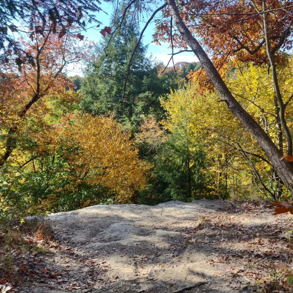 I didn’t realize that the Grandma Gatewood trail is also the Buckeye Trail, so when I was trying to compare the map on my phone to the map at the trail heads, I couldn’t figure out where Grandma Gatewood was. Then I figured out the blue marks painted on the trees leading the way – blue being the color on the legend for G.G.’s trail – were the same as the Buckeye Trail leading toward Ash Cave.