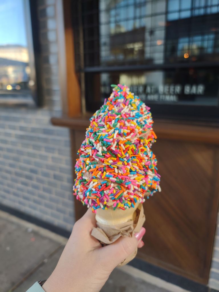 It was time to get back to the Element for an early dinner and retire for a big day on Sunday. Which I did. Dinner was fish ‘n chips at The Lone Goat pub. Dessert was a chocolate soft serve ice cream cone dipped in sprinkles from the soft-serve window across the street. It was delicious.