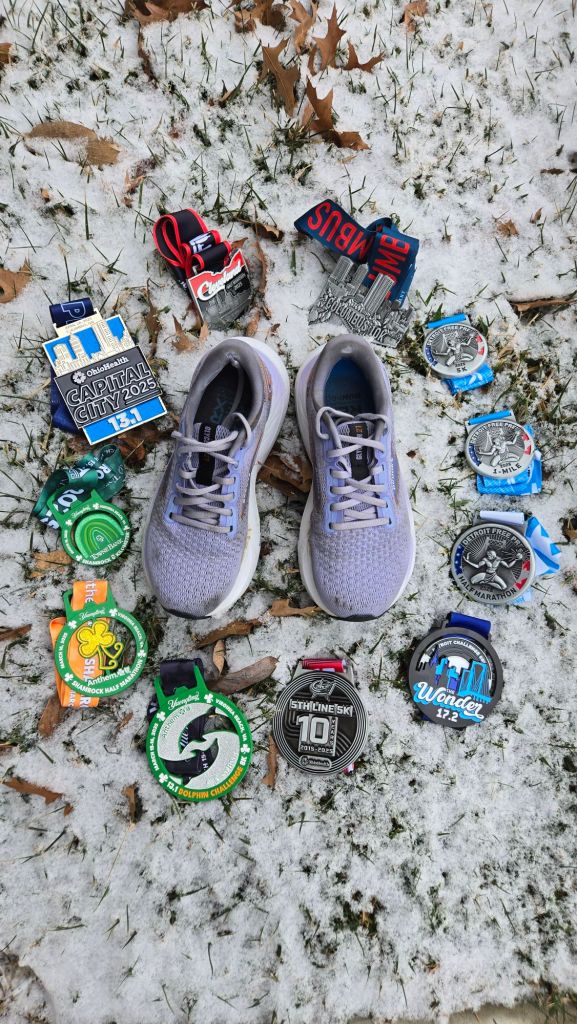 I started out 2025 with my traditional volunteering at the First on the First 5k, with the first race a month later at the 5th Line 5k. That was a fun race – you really can’t go wrong with finishing inside of Nationwide Arena in frigid February.